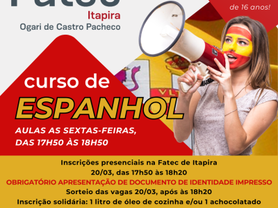 A Fatec Itapira abre inscrições para o curso gratuito de Espanhol Básico, com foco na comunicação.