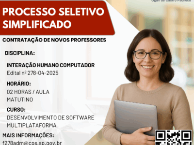 278/07/2025 DSM BANCO DE DADOS – NÃO RELACIONAL 4 hrs aula – Noturno Site CPS 278/08/2025 DSM PROCESSAMENTO DE LINGUAGEM NATURAL 4 hrs aula – Noturno Site CPS 278/09/2025 DSM APRENDIZAGEM DE MÁQUINA 4 hrs […]