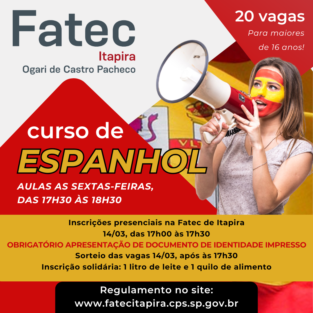 📢 Inscrições abertas para curso gratuito de Espanhol na Fatec de Itapira!✨
