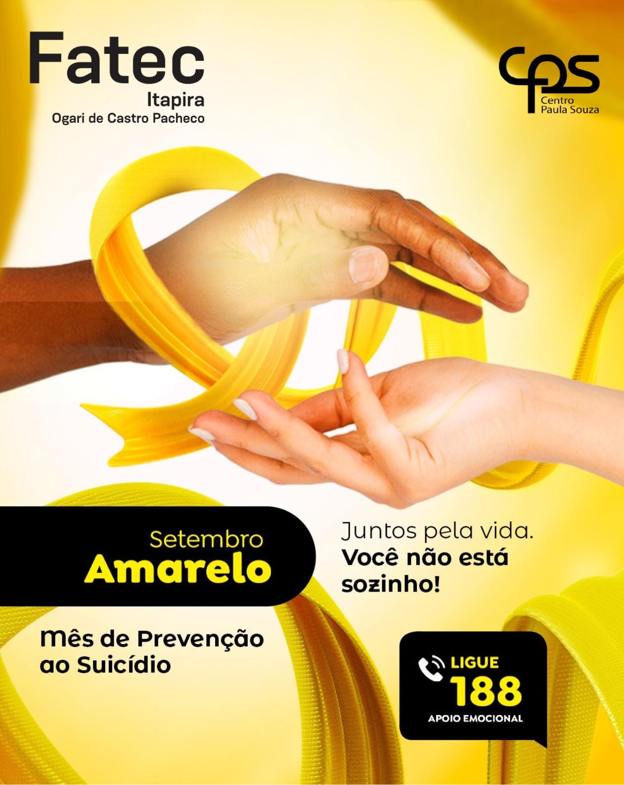 Juntos pela vida! Lembre-se: você não está sozinho. Sempre há alguém para ouvir e apoiar. #SetembroAmarelo#ValorizeAVida#ConexãoQueCuida #FatecItapira